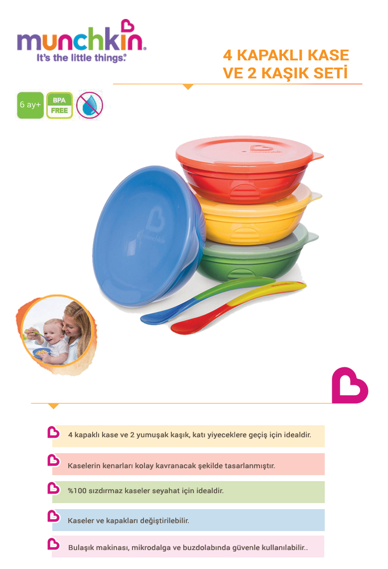 Munchkin 4 Kapaklı Kase ve 2li Kaşık Seti Stok KoduMUN.12106 MarkaMunchkin